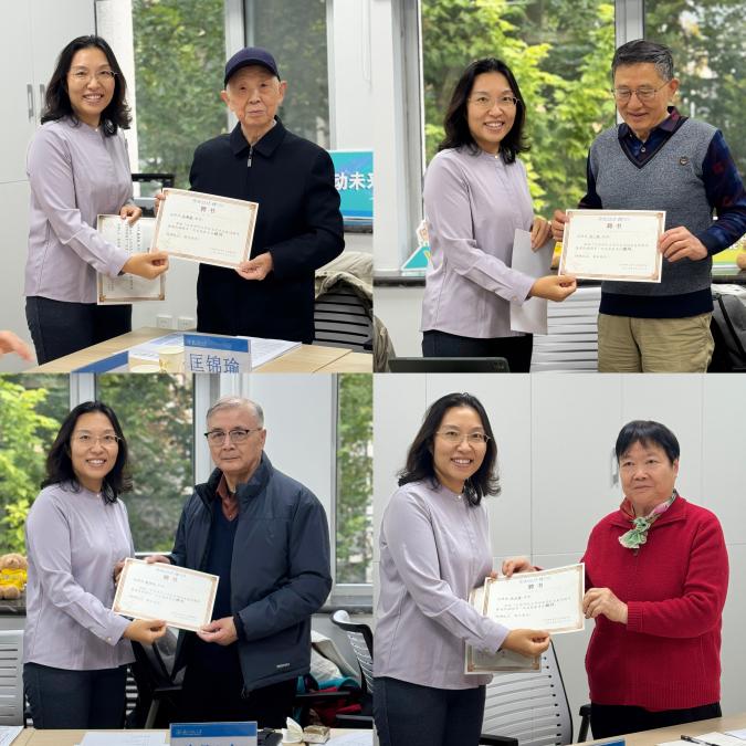学院首批向四位老教师颁发了项目顾问聘书,邀请各位老师继续关心学院发展,为院史编纂工作提供指导和支持。