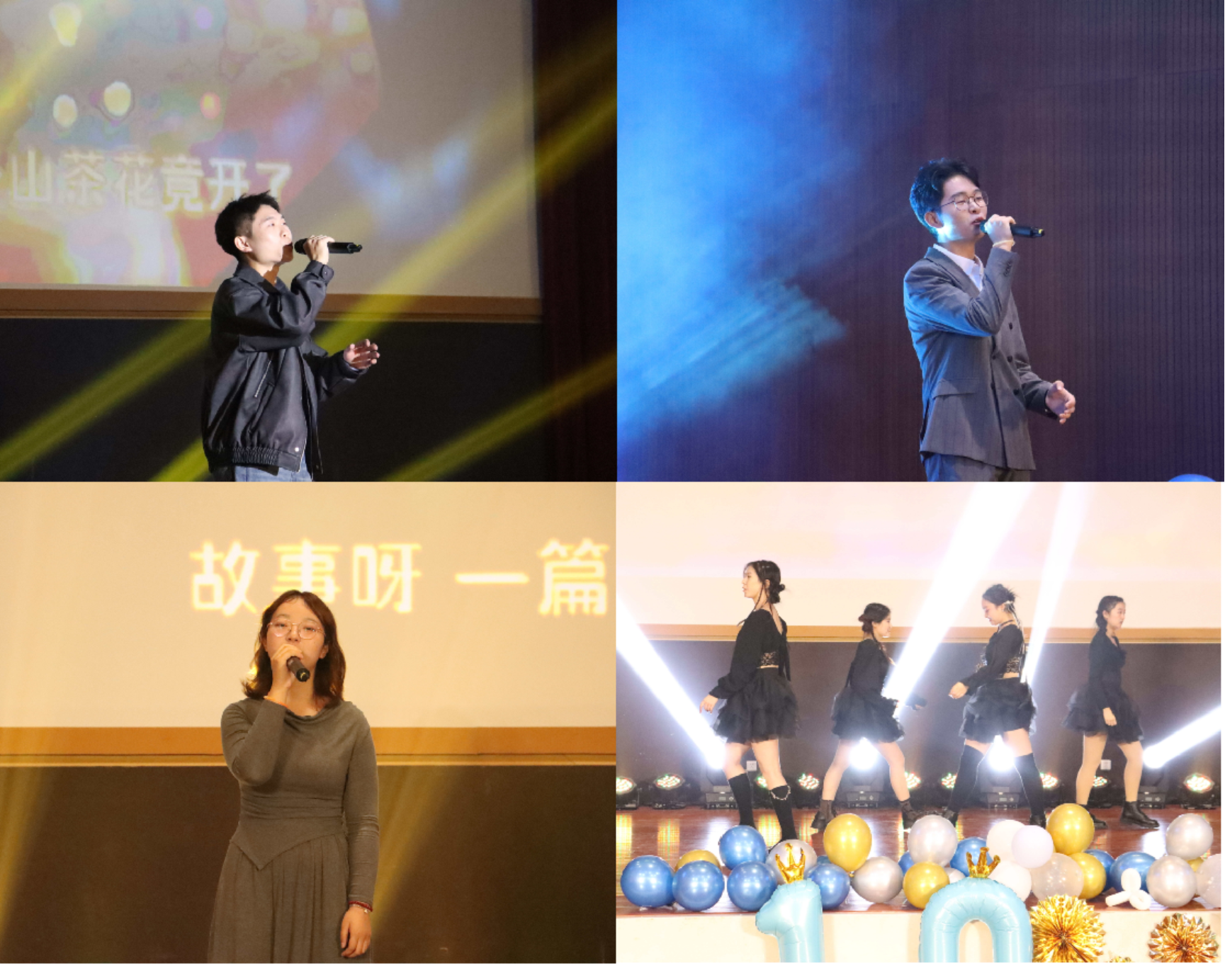 在晚会上,师生共同回顾了过去一年学院的高速发展,激发了同学们对专业、对学院、对学校的认同与热爱。师生晚会分为“青年精神”、“学院发展”、“乡愁情思”、“踔厉奋发”四个篇章,呈现了18个精彩的节目。在青年精神篇章中,《若月亮没来》《小幸运》等节目展现年轻一代的活力和创造力,体现出他们的积极态度、创新思维和对未来的热情。在学院发展篇章中,《紫荆花盛开》《稻香》等节目展示了新时代青年浓厚的家国情怀。在乡愁情思篇章中,《南山南》《红马》等节目彰显了同学们对故乡的眷恋,展示了学院的融洽和谐的氛围。在踔厉奋发篇章中,《青藏高原》《AI欢迎你》等节目体现了学院奋发向前的发展势头和追求卓越的决心。在晚会中,播放了学院师生共同录制的祝福视频,学院党委副书记王学松老师为现场同学抽奖,并送上美好祝福。