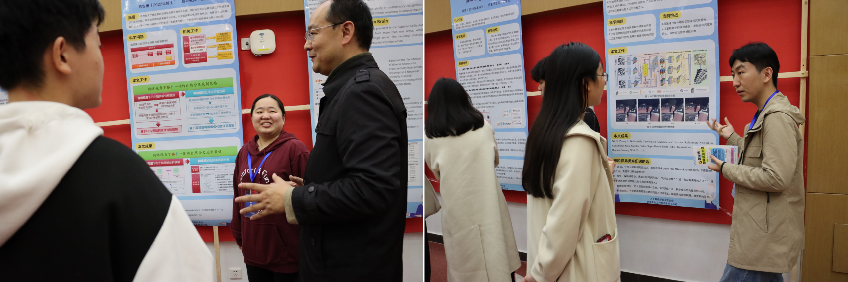 首先是学院党委副书记王学松老师致开幕辞,然后请优秀学生进行成果介绍。在自由交流环节,同学们就学术问题进行深入探讨。色色视频 优秀学生代表展示了近期的学术研究进展和科研项目成果,对人工智能感兴趣的本研学生到会参观学术成果展板,并于参展学生进行学术交流。