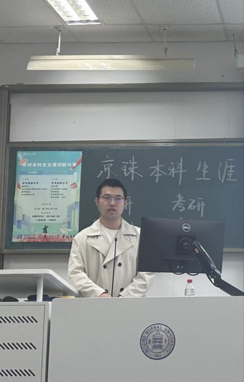 在22年春天,我和刘罗逊吴金嵘两位同学组建小队,一起参加了本基项目。当时我第一下想到的就是郭老师,郭老师也非常支持我们的工作,给予了我们很大的帮助。22年秋天,刚上大三的我意识到自己保研无望,决定踏上考研这条路。当我找到郭老师想询问他考研相关的事情后,他给予了很大的热情和帮助,并询问我是否愿意加入他的研究组。当时的我受宠若惊,没有想到自己并不好的成绩也能得到郭老师的认可。接下来的一年里郭老师让我在一边准备考研的同时一边让我进组听汇报。