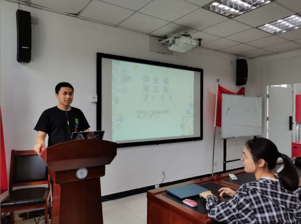 图一:学习委员向同学们介绍大学生科研的分类,流程等相关事宜
